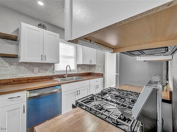Come and see this desirable 4-bedroom Cape Cod home on Cleveland’s west side showcasing stunning modern updates throughout. Step inside to discover all-new vinyl flooring that flows seamlessly through the home, new carpet in the bedrooms, freshly painted walls, and recessed lighting that brightens every room. The beautifully renovated kitchen features all-new cabinets, butcher block countertops, floating shelves, a stylish new backsplash, and brand-new stainless steel appliances. The convenient main level includes two bedrooms, a washer and dryer hookup, and the upper level offers two additional bedrooms for flexible living options. The updated bathroom boasts a quartz countertop, luxury-style tile, and an LED mirror for a sleek, modern finish. Enjoy comfort year-round with new ceiling fans throughout, vinyl siding, vinyl windows, and a two-car garage that complete this move-in-ready home. Nestled in a desirable west-side neighborhood near shopping, restaurants, and major highways, this home combines style, comfort, and convenience all in one perfect package.