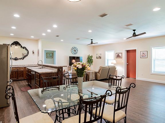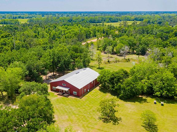 If you love a Barndominium then this home is for you! 80x60 - 4,800 sq ft. The cozy home sits on the front of the barn and is 1680 sq ft. Split floor plan with 3 bedrooms and 2 baths. The living room is open to the kitchen, with beautiful cabinetry, tons of counter space and stainless steel appliances. Spacious Master bedroom with a walk in closet. LVP flooring throughout. Large laundry room with washer and dryer to convey with the home and pantry. Walk out the back door into a HUGE barn!! There is a half bath in the barn with an upstairs the same size as the home that could be finished out as additional living space. Two large roll up doors, one is 12x12 and the other is 12x14, plenty of room for all of your tools, cars, boats and RV. The home sits on over 4 beautiful acres with large oak trees and a pond. Well water with whole house Culligan water system.