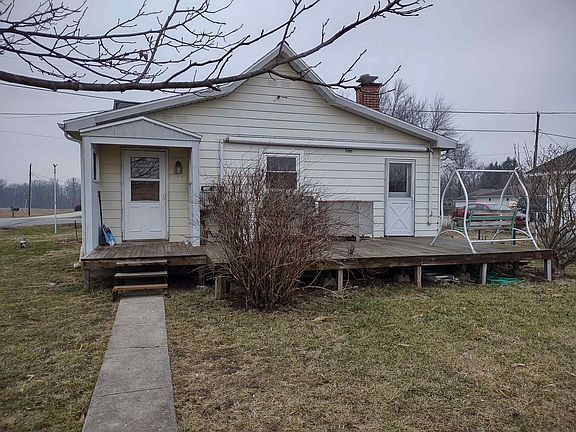 Looking for a mini farm in Howard County? This is your chance! This spacious 2-bedroom home sits on just under an acre in rural Greentown. It features a large eat-in kitchen a great sized living room and 2 decent sized bedrooms. The south facing back deck provides a great spot for sunrises, sunsets, and all-day sunbathing and it includes a retractable awning for those that prefer the shade. This home is currently home to a friendly cow and all her little feathered friends who reside in a fully fenced pasture at the far end of the property with a small, stocked pond! Half of the detached garage was once used as stalls for large animals but has since been used for storage. Stall doors do however remain if the new owner would like to use it that way again.