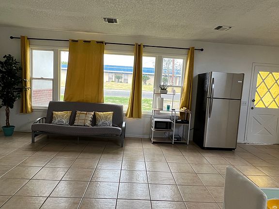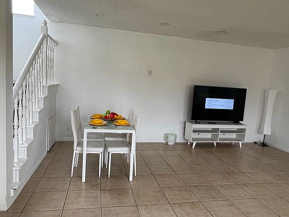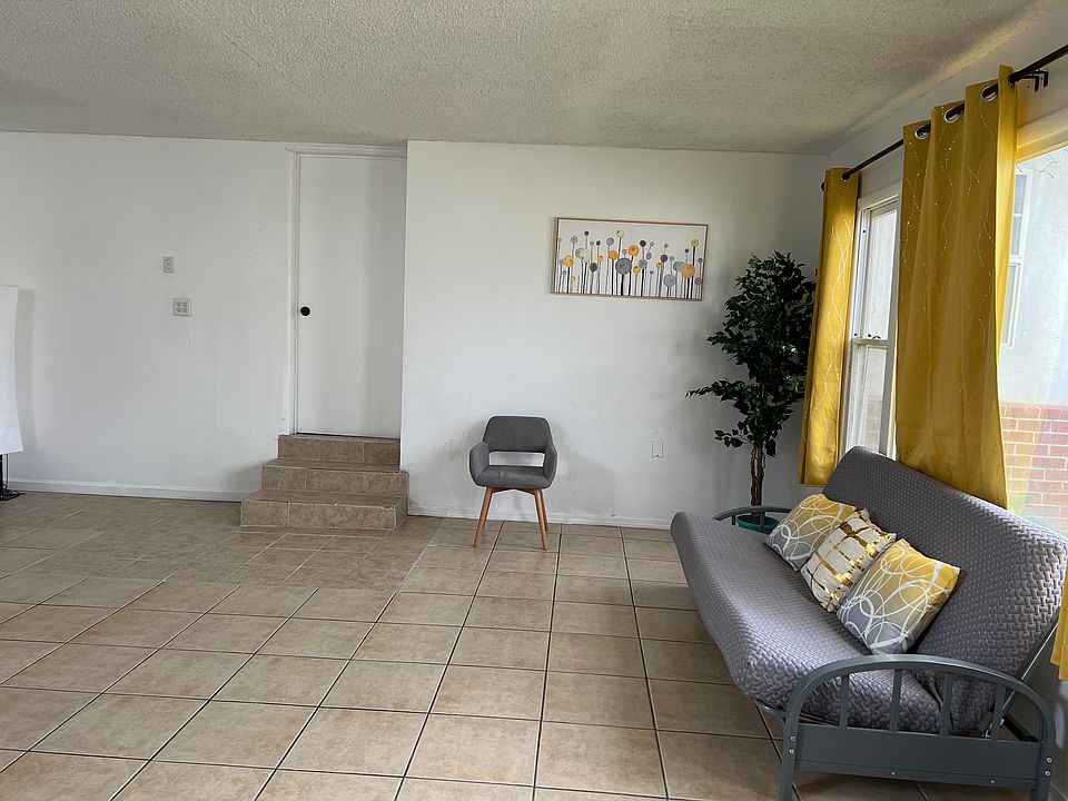 * Tile flooring throughout the living room, kitchen, and bathroom
