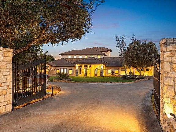 Just minutes from town, this gated estate features a 4-bedroom custom home, built with purpose at every turn. Knotty Alder millwork carries through the home, along with solid-plank wood floors, porcelain tile, Kichler lighting, Moen ORB fixtures, and a full suite of Kitchen Aid appliances. The gourmet kitchen sits at the center of the main level, surrounded by a dedicated office and a bonus room. Every bedroom has its own ensuite with a full tub and shower. The primary suite features a full steam shower by Mr. Steam, a built in safe, and a concealed passageway that leads from the closet to the upstairs hall. A 13x13 finished space off the closet offers extra storage and future options for expansion. The dining area centers around a gas fireplace and large windows overlooking the backyard. Upstairs, the large gameroom includes a wet bar with a beverage fridge and opens to a balcony that frames the hill country. Above it, the crow’s nest patio area provides an elevated view across Misty Valley, a favorite spot during early mornings. The backyard continues the thoughtful design, with a 38,000 gallon pool with a sun shelf, 3 swim-up stools, a heater, and a dedicated propane tank. The patio area includes multiple outdoor seating areas surrounding the pool, easily connecting outdoor space to the home. Nearly one acre of landscaping surrounds the property with irrigation throughout, artificial turf near the pool, and a redirected wet weather creek that follows the natural grade. In addition to the 3-car garage, a 1,200-square foot workshop/toy barn can comfortably accommodate 4 additional vehicles. The workshop sits on a full concrete pad with power, epoxy floors, tall pass-through garage doors, and a center drain. The home is zoned to allow 1 horse, and includes a paddock adjacent to the workshop. In the end, it is simply a place that delivers more than what you expect at every turn.