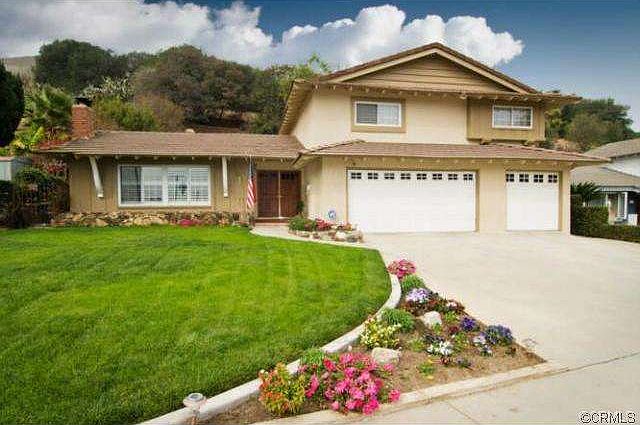 This charming home locates on a secluded hillside,facing East in an established neighborhood is the perfect place for relaxing after a long day at work. Move-in ready condition, pride of ownership, the owners have invested heavily in keeping this home in top condition: new interior and exterior paint, tile roof, brand new solid surface kitchen and bathroom countertops, laminate wood and tile flooring downstairs throughout. New carpet in all bedrooms upstairs, double pane windows to maintain temperature and keep out noise throughout. Enter the house through beautiful double entry wood door to a cheerful living room with wood flooring, plantation shutters and stone fireplace. The sunken den has wood flooring and sliding glass door with plantation shutters leading to a tranquil courtyard patio and backyard. A suitable bonus room makes a perfect office adjacent to the den. The upstairs master bedroom has sliding glass door opening to a balcony overlooking the tranquil hillside backyard, a like-new stand-alone sunroom with 6 person spa. Convenient freeway accessibility, schools within walking distance, the Hacienda Hill trailhead just one block away and surround by other hiking trails.This home was designed for entertainment. You have to see to believe it.