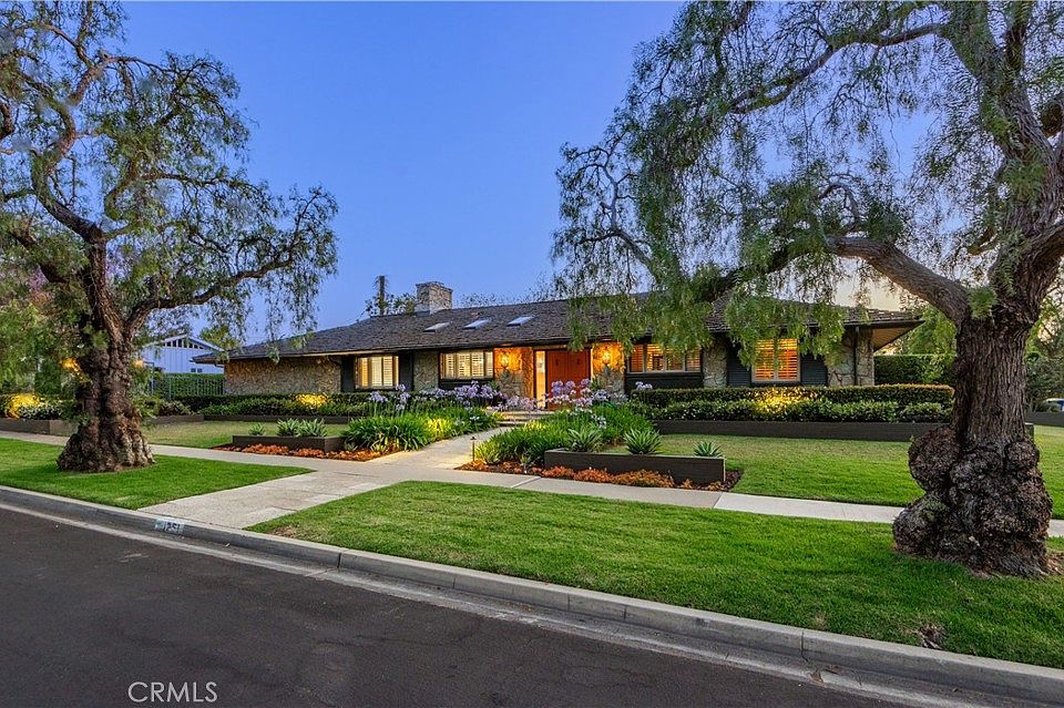 Located within the sought after neighborhood of Park Estates, 1251 Bryant Road is a sprawling single-level mid-century modern ranch style home sited on a large 10,375 SF lot. Designed by architect Raymond A. Sites, this fine estate home is a testament to his visionary approach to architecture. Positioned on a prime, interior corner lot, this custom residence boasts exceptional curb appeal with expansive and beautifully landscaped grounds. The sprawling U-shaped residence features a thoughtful and spacious floorplan with 3 bedrooms (potential 4 bedroom) plus a home office, 3 bathrooms, and 3,072 sq. ft. of living space. The home’s striking design, Palo Verde stone façade, mahogany doors and accents, and oak flooring provide a warm, timeless appeal. Expansive 30-foot great room with beamed ceilings and generous use of windows and sliders is at the center of the home. Gourmet kitchen is equipped with high-end appliances, an extra-large island, casual eat-in dining area, workstation, and is open to the Great Room. Separate family room/game room with gorgeous beamed ceilings and stand behind bar area with space for a potential fourth bedroom. Primary en suite offers a private retreat with fireplace, updated bathroom, and two walk- in closets. The additional two bedrooms located on the opposite wing are spacious with upgraded hall bathroom. There is a wonderful indoor laundry room as well as a separate mud room. The Napa inspired backyard is equally impressive featuring a beautiful patio with thoughtful lighting, stone planters, and an outdoor kitchen. Covered patio/loggia space, fireplace, spa, and water wall feature providing an organic and peaceful feel. The large lot offers tons of space for enjoying the outdoors with grassy areas and mature trees that add privacy and beauty. There is an elegant electronic gated driveway leading to garage complete with fresh paint and new epoxy flooring. Living in Park Estates the residents enjoy the beautiful tree-lined streets, wide lots, and tight-knit community. Minutes from Alamitos Bay, this residence is ideally situated to enjoy the best of both worlds: neighborhood living with convenient access to the nearby beaches. Top-rated schools, golf courses, and local parks. Nearby Alamitos Bay offers watersports, kids camps, SUP, boating & sailing. Centrally located to LA, South Bay, & Orange County. 1251 Bryant Road is a rare opportunity to own a fine architectural home in one of the area's most sought-after communities.