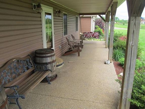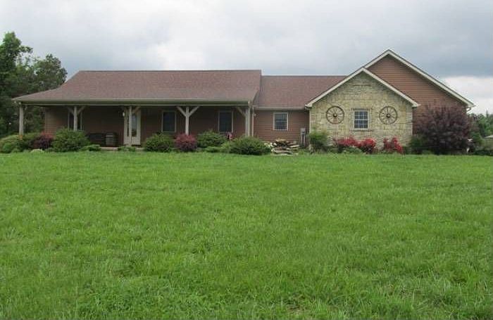 Super place located in the "Burg". Home built in Western style with arched doorways, open floor plan, hardwood and great kitchen.Overlook the lake from living room, or the woods from the walkout basement, fenced pasture with stock pond all lend to the wonderful feel thisproperty has. This kitchen is equipped with a six burner gas stove like none you have ever seen. Kitchen bar overlooking dining area gives it awarm feeling.