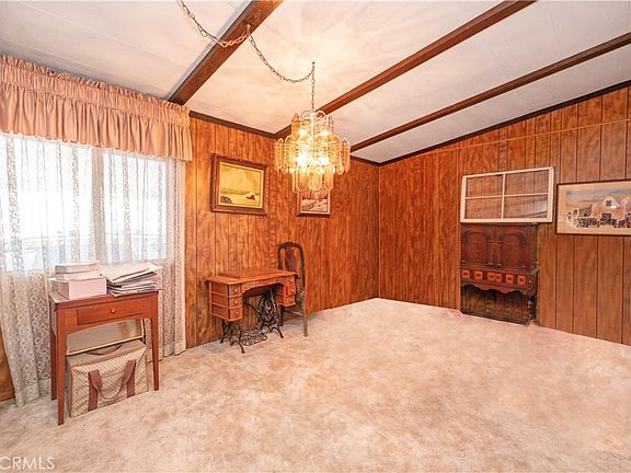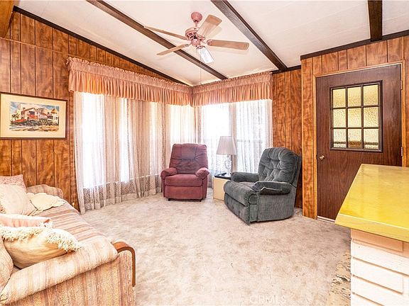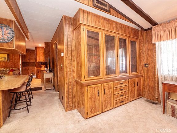 Welcome Home! Nestled within the coveted Lugonia Fountain Mobile Home Estates, this charming manufactured home boasts an open floor plan. It is ideal for those seeking a peaceful living within the vibrant 55+ community of Redlands. Upon arrival, be captivated by the serene mountain views that greet you from the comfort of your abode. The open floor plan seamlessly integrates the spacious dining area, accentuated by a built-in China cabinet, perfect for showcasing your cherished dinnerware and mementos. The kitchen offers an island adorned with inviting bar seating. This kitchen exudes practicality and style and is equipped with modern amenities, including a built-in range, oven, dishwasher, trash compactor, and refrigerator. A spacious primary bedroom with an attached bathroom by unwinding in a sunken tub or opting for a separate shower offers the ideal sanctuary after a long day. Discover a guest bedroom conveniently accessible to the second bathroom adjacent to the laundry room. Partially carpeted floors complemented by central heating and air conditioning ensure year-round comfort. Outside is a covered side patio area that awaits beckoning moments of relaxation or lively gatherings. A carport adds convenience and coverage for parking. Indulge in an array of amenities within this senior community. The clubhouse provides opportunities for social engagement, while the swimming pool offers refreshing recreation. The park-like setting, complete with a barbeque pit, sets the stage for delightful outdoor gatherings. This home is situated close to Parks, Restaurants, Entertainment, Shopping, and Freeways, which offers convenience and accessibility. An enticing opportunity awaits—a place to call home that combines comfort, convenience, and community living. Make an offer we cannot refuse!