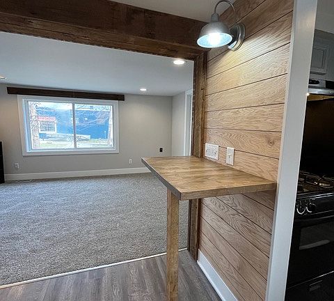 Barn wood updates to the interior of this cozy little home makes you feel right at home as soon as you walk through the front door. Plenty of natural light comes through the living room space to contribute to the relaxing atmosphere.