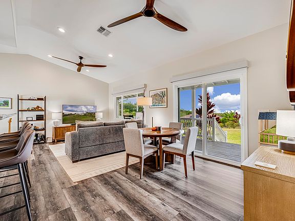 Experience North Shore living at its finest in the Pe‘ahi Hui subdivision of Haiku. This beautiful 1.6-acre property offers ocean views and spectacular sunsets. With a fresh, modern aesthetic that feels brand-new, the home features newly painted interiors and exteriors, durable composite vinyl flooring, granite countertops, a spacious laundry room, and a large two-car garage with storage. Recent upgrades include central air conditioning and a whole-home water filtration system, a new LG induction range and Bosch dishwasher, an updated shared bathroom with new tub and shower, and new ceiling fans and window blinds throughout. The wraparound deck invites you to relax and take in panoramic mountain and ocean vistas, with privacy provided by a maturing hedge shielding the neighboring home. As the main unit of a two-unit CPR, this home blends comfort and style with unique outdoor amenities. Located just 15 minutes from iconic Ho'okipa Beach and Mama’s Fish House, and a short drive to Kahului, this property offers the perfect balance of tranquility and convenience.