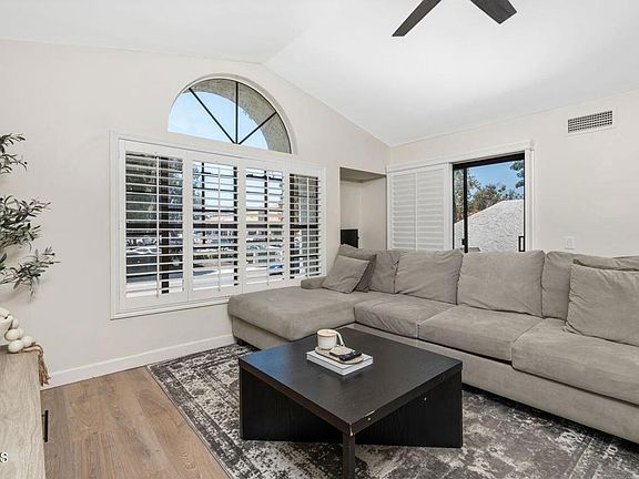Welcome to this beautifully maintained 2-bedroom, 2-bath home nestled in the highly desirable Mission Oaks neighborhood. Offering 1,128 square feet of comfortable living space, this home features an inviting open layout with high vaulted ceilings, plantation shutters, and ceiling fans in every room. The kitchen is equipped with stainless steel appliances, and recent updates include an HVAC system installed in 2019 and a water heater installed in 2021. Enjoy the convenience of indoor laundry and a two-car garage. The community offers wonderful amenities including a sparkling pool, lush greenbelts, and beautiful courtyards--plus RV parking is available. Located close to parks, top-rated schools, and shopping. This home is in an exceptional location. Perfect for first-time homebuyers or those starting a family!