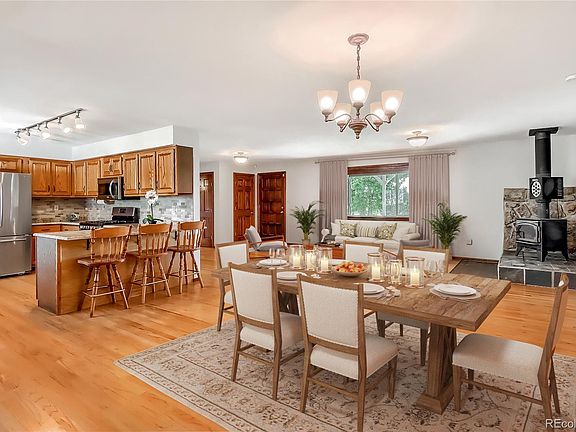 Tour this dual-main-level master, 4-bed, 4.5 bath ranch-style home, less than 2 miles to the center of Elizabeth. Approximately 5 minutes to gas, grocery stores, and restaurants, you will find this home on a peaceful dirt road with a rolling-hills view. Nestled among trees on 7.15 acres, you'll appreciate the covered front porch. Upon entering the open floor plan, you will find an abundance of natural light. The first of 2 master bedrooms is located to the right of the front door, separated from the other bedrooms, and features an ensuite bathroom. Past the large living/dining room, you'll find the kitchen, updated with granite countertops and stainless-steel gas appliances. You will find the second master suite added in the early 2000s, including an ensuite bathroom with a jetted tub. A sliding glass door from the bedroom leads to the hot tub. At the rear of the home, you'll find a private, dual-level 35' x 23' newly-built low-maintenance deck. The unfinished basement has storage shelves, a water softener, and two hot-water heaters. Outside you will find a 1900 sq ft steel-frame shop with a concrete floor, a car lift, swamp cooler, 3/4 bath, and stowable stairs leading to an attic for extra storage. The shop is heated and has its own hot water and septic systems. A washer and dryer in the shop make it truly self-sufficient. Abutting the shop is a covered storage area with a 12 ft high entry. Alongside the shop are two one-car garages; one includes a woodshop, and the other is fully insulated. Nearby is another storage shed and hookups for three RVs, including one full hookup with 30-amp service. In addition to fencing on 3 sides of the property, there is a fenced space along the western boundary enclosing a hobby storage area. Last but not least, this property has no HOA, giving you the freedom to use the space as you wish! Details are approximate, please verify.