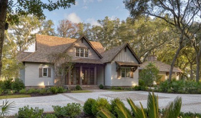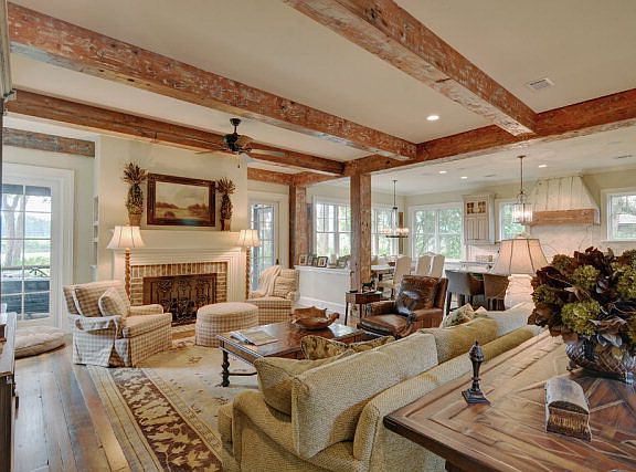 This wonderful Lowcountry Style home offers a tranquil lakefront setting with wonderful panoramic views. Generous open living with a cottage feel, elegantly detailed with custom finishes throughout featuring reclaimed hardwood floors, reclaimed wood beamed ceilings, great room with fireplace opens to screened terrace. Gourmet kitchen with top of the line appliances with gas range, large laundry & mud room, 1st floor master, grand master bath with his & hers closets, 1st floor guest suite or study with vaulted beamed ceiling. Screened terrace offers vaulted beamed ceilings and fireplace, two car garage and fenced dog run. Perfectly situated amongst the Oaks, this home offers Lowcountry charm at its finest!