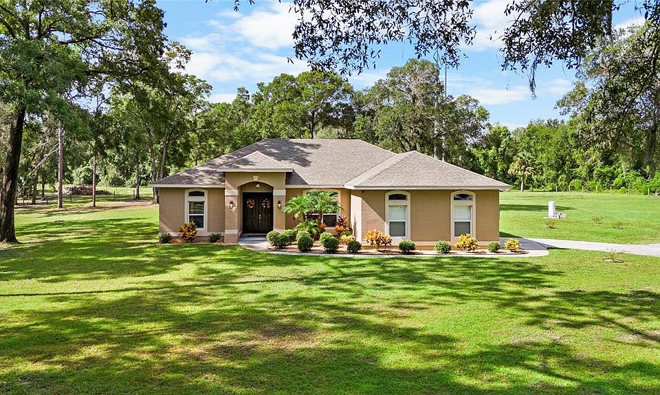 One or more photo(s) has been virtually staged. IMMACULATE! IMPECCABLE! REALLY ALMOST TOO GOOD TO BE TRUE! EVERYTHING about this sweet little gem TICKS ALL THE BOXES! LOCATION, SETTING & EXPANSIVE ACREAGE–Tucked among some of DeLand’s most distinguished estates, this 2.5-ACRE ESTATE combines privacy, freedom, & natural beauty, all just 10 minutes from I-4. A turn onto Pressly Circle reveals a winding road beneath a canopy of majestic oaks, ending in a peaceful cul-de-sac where this inviting charmer proudly graces. Beyond the electronic GATE lies a property CLEARED & FULLY FENCED! With NO HOA & the flexibility of UNINCORPORATED VOLUSIA COUNTY, the possibilities abound! Zoned RES/AG, the estate welcomes HORSES! The grounds are further enhanced w/an IRRIGATION SYSTEM, covering the perimeter of the lush grassy yard. HOME–Two upgraded LANTERNS flank the covered entry, framing the 8’ DOUBLE FRONT DOORS that open into a living space where 10’ CEILINGS soar & NEW LUXURY VINYL WOOD PLANK FLOORS extend—working in harmony to create a warm & stunning first impression! A wall-mounted LINEAR ELECTRIC FIREPLACE anchors the GREAT ROOM, curating a modern & inviting atmosphere, while TRIPLE WINDOWS along the back wall frame the sweeping acreage like a living piece of art! The KITCHEN & DINING AREAS strike a perfect balance of charm, character, & modern style—bright & cheerful! Notable highlights include a GLASS-TILED BREAKFAST BAR, SS APPLIANCES, SOFT-CLOSE HARDWARE w/NEW PULLS, GRANITE COUNTERTOPS, SUBWAY TILE BACKSPLASH, & a KITCHEN ISLAND. A TRIPLE-SPLIT FLOOR PLAN ensures privacy & comfort. The PRIMARY SUITE is spacious & bathed in natural light from every direction—an ARCHED TRANSOM above the bed, TWO WINDOWS overlooking the grounds, & an 8’ EXTERIOR DOOR w/a FULL GLASS PANEL. Sunshine also pours in from the ENSUITE, which showcases a NEW WALK-IN SHOWER, WHITE GRANITE COUNTERTOPS, a convenient LINEN CLOSET, & a PRIVACY CORNER. Completing the owners’ suite are SEPARATE HIS & HER WALK-IN CLOSETS! A SECOND BEDROOM enjoys a LARGE DOUBLE WINDOW w/ARCHED TRANSOM, making it equally well-suited as a HOME OFFICE or HOBBY ROOM. On the opposite side of the home, BEDROOMS THREE and FOUR offer generous closet spaces & serene views of the surroundings. Serving this side of the home is the RECENTLY UPGRADED SECOND BATH, also featuring its NEW WALK-IN SHOWER! METAL BUILDING–NEW as of 2020, this versatile STRUCTURE (28x35)—built on an expanded CONCRETE SLAB w/an OVERSIZED GARAGE DOOR—is perfectly designed to accommodate recreational vehicles & all the big outdoor toys! Fully functional with 60 AMP ELECTRICAL SERVICE & POTABLE WATER, it also features a SIDE PEDESTRIAN DOOR for convenience. Above, a SECOND-LEVEL LOFT spans the full-width, providing effortless access to ABUNDANT STORAGE. SCREENED LANAI & POOL–Approximately 1,200 SF of OUTDOOR LIVING unfolds beneath the NEWLY RESCREENED LANAI, bordered by remarkable AGAVE SUCCULENTS & emerging SAGUARO CACTI. An additional 200 SF of COVERED SPACE, elevated by a gorgeous natural WOOD-INLAID CEILING, ensures year-round usability! At the center, a refreshing POOL w/DUAL PROJECTING FOUNTAINS creates a dynamic focal point, while the STRATEGICALLY TIERED DECKING draws the eye from the water’s edge into the brilliant greenery beyond. ADDITIONAL RECENT IMPROVEMENTS–EXTERIOR EPOXY PAINT on FRONT ENTRY, POOL DECK, & ATTACHED GARAGE; ALL INTERIOR/EXTERIOR LIGHTING; INTERIOR/EXTERIOR PAINT; ROOF (2019); HVAC (2019); TANKLESS GAS WATER HEATER (2019)!
