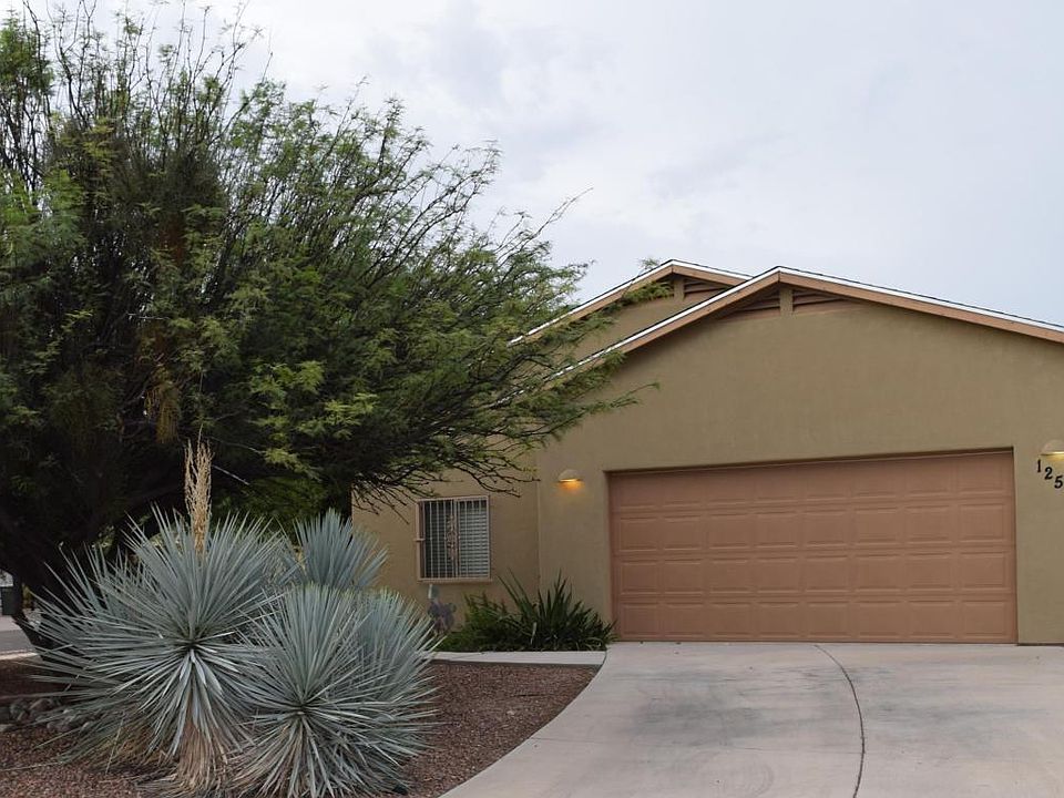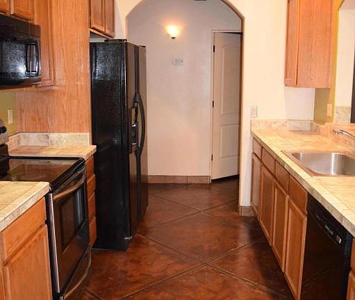 Updated home in move in condition. Nice 3 bed/2 bath w/many updates including Kitchenn with stainless/black appliances, tiled countertops & pass-through to great room w/breakfast bar. There is also a separate breakfast room off of the kitchen. Stunning scored concrete floors sets off the charm of the great room which can nicely accommodate living & dining areas. The sliders lead to a large backyard w/gates to side street and to front yard. For extra storage, there is a shed in rear yard. The laundry room leads to the two-car garage. Nice arched doorways throughout. Fabulous home at a fabulous price. Don't miss this one.
