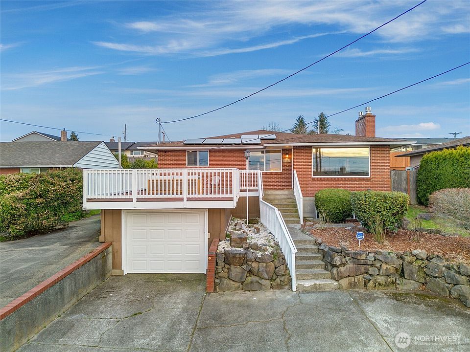 This beautifully updated 3,100sf West Tacoma home is just a short walk from Titlow Beach and the Narrows Bridge, offering breathtaking views of the Olympics, Puget Sound, and stunning sunsets. Featuring 5 bedrooms and 3 bathrooms, spacious front deck perfect for sunset views, parking for 7, plus a private backyard with new turf and a basketball court. Enjoy modern upgrades like a newer furnace, freshly painted walls, updated windows, paid-off solar panels, a new electrical panel, new garage door, updated flooring, new trim, new gas fireplaces, and stone countertops throughout. With RV parking, shiplap walls, and updated millwork, this home blends charm with convenience. Minutes from Hwy 16, dining, Whole Foods, and Chambers Bay Golf Course.