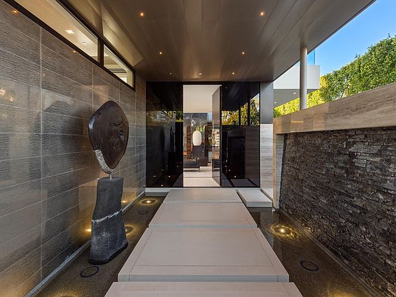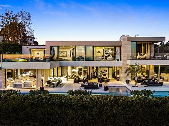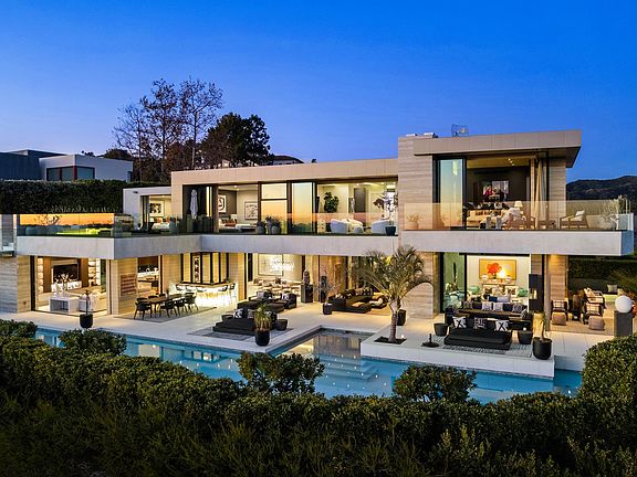 Minutes from the Beverly Hills Hotel and all of the best restaurants, tucked away at the end of a private cul de sac in Prime Beverly Hills. A gated entrance welcomes guests to a stunning water feature and up to the massive door crafted from black glass. At approximately 9,000 square feet this 5 bedroom 7 bathroom has ample space for friends, family and entertaining. Finished in the finest materials available it embodies luxurious LA living. Walls of glass throughout amplify the 180 degree views from downtown to the ocean. Fleetwood doors throughout further this creating the perfect indoor outdoor flow. Lounge and living room on the main level act as the gathering spaces for this home. An oversized chefs kitchen comes packed full of top end appliances, while an adjacent bedroom acts as additional office space. A masterpiece with breathtaking views through floor to ceiling retractable glass doors. The upstairs level offers a spacious and sleek master suite, two guest rooms, and terrace putting green. The main terrace has one of the most incredible infinity pools built. Soak in the city views, multiple living and dining areas, and a stunning 6-car auto gallery. Entertain on the lower level with a large movie theater, bar, and wine cellar. The most beautiful living wall brings light and nature inside. Views from every level span from Downtown Los Angeles to the ocean and make this home simply the best available.