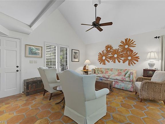 Welcome to your dream retreat in Bent Pines Villas, where tranquility meets convenience in a lush, tropical paradise. This inviting 2-bedroom, Den, 2-bathroom townhouse offers an idyllic lifestyle just minutes from Naples' renowned white sand beaches and vibrant downtown attractions. The first floor boasts a primary bedroom complete with a plush queen-sized bed, a large closet, and bathroom. Enjoy gatherings in the formal dining area designed to accommodate six, perfect for hosting family dinners or entertaining friends. The cozy living area offers a welcoming atmosphere for relaxation, while a separate den on the first floor provides additional space. The beautifully renovated kitchen featuring modern appliances and a charming morning room with seating, where you can sip your coffee while soaking in the natural light and views of the outdoor greenery. The second floor hosts a comfortable guest bedroom with a queen-sized bed and an adjacent bathroom, ensuring your visitors enjoy their stay with ample privacy and convenience. Step outside to discover a private fenced area, perfect for enjoying a morning coffee or an evening cocktail in your own personal paradise. Immerse yourself in the community spirit by taking advantage of the serene pool that overlooks a tranquil lake, ideal for sunny days spent lounging and soaking up the soothing ambiance. Whether you seek a peaceful sanctuary to unwind or an active lifestyle filled with dining, shopping, and beach days, this townhouse is your perfect haven.