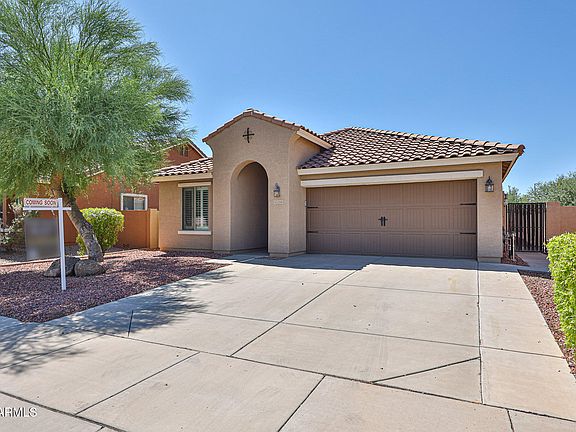 Ready to make this beautiful home in Veramonte yours!! Features a wide open split floor plan, wooden shutter window covers, under cabinet lighting, garage service door, built-in BBQ out back for entertaining, and solar to help with your energy costs. The water heater, washer, dryer, and A/C have all been replaced within the last 3 to 4 years. Close to the US60, Loop 101, Loop 303, The Northern Parkway.