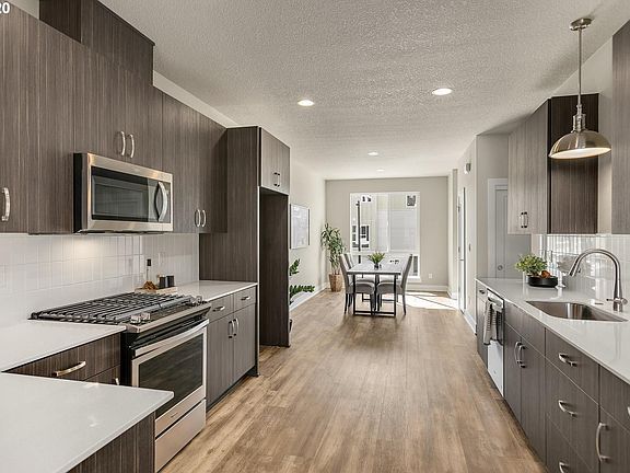 Unique opportunity to own a luxury townhome BACKING TO GREENSPACE w/ FENCED YARD & 2-car tandem garage. Expansive windows, oversized driveway, electric car charger, ducted heating/AC + stand-out finishes! Desirable location close to major employers + coveted schools, Scholls Heights & Mountainside HS. Final home supersedes all info provided. Prop Tax TBD. 2-10 warranty incl. **Photos reflect similar floorplan, not finishes.**