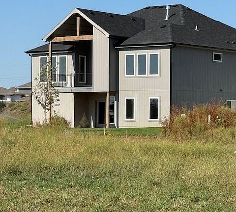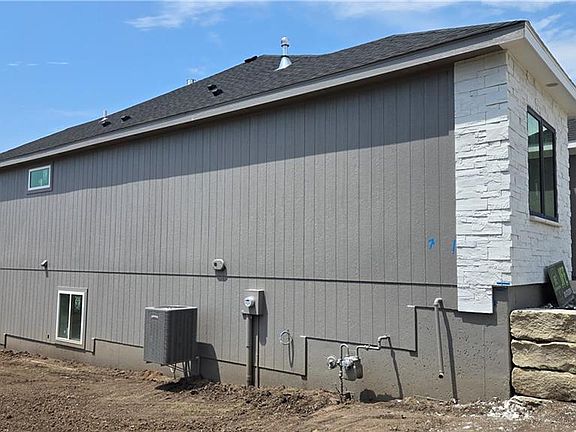 "The Bayberry I" by JFE Construction located on Lot 90 is a 4 bed, 3 bath Reverse 1 ½ Story. From the moment you walk-thru the 8' double doors you will be amazed. The great room with a vaulted ceiling, floor to ceiling fireplace, and a wall of windows provides a spacious open feeling. Large slider doors from the great room expands your entertainment space to the covered deck w/stone fireplace. Kitchen boasts a large island with quartz tops, stainless appliances, and a large pantry with built in coffee bar. Primary ensuite includes a free-standing soaker tub, double bowl vanity, zero entry shower and walk-in closet. 2nd bedroom or office on the main. The finished lower level includes a family room, wet bar with island, and 2 additional bedrooms and a full bath. Minutes from Blue Valley K-12 schools. Photos include a rendering of the Bayberry. The final home may vary. Any additional photos show the current state of the actual home. Taxes are estimated. Models Open Daily, 11 am – 5pm, and Sunday, 12-5pm. Visit the sales office at 12407 W 183rd Terrace, Overland Park. THIS HOME IS ESTIMATED TO BE COMPLETED IN SEPTEMBER.