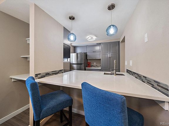 Welcome to this beautifully remodeled 1 bed 1 bath condo. This home has been meticulously remodeled in 2021 with new gentle gray transitional style cabinetry with soft close feature on doors and drawers, gleaming quartz counters, stainless steel LG appliance suite, built in niche in dinning room, hand scraped wood flooring, complete bathroom remodel with beautiful floor, accent and wall tile selection and vanity with quartz counter, new sliding glass patio door, interior doors, new base trim, new tile fireplace surround, neutral paint, drywall, new electrical panel and outlet boxes and receptacles and new recessed lighting. On Dartmouth and Peoria, minutes away from the recently updated King Soopers shopping center which includes new restaurants, retail shopping and services. This property has 2 reserved parking spaces with permits and is close to the street so guests dont have to trek through the community to reach your new home. Ease of access to major thorough fairs and public transportation; The seller has provided a transferable Blue Ribbon Home Warranty (1 year) included with the purchase. This condo is a must see and is sure to exceed your needs and expectations!
