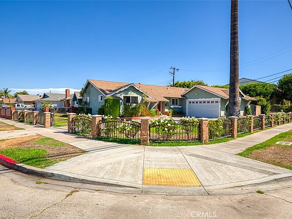 Welcome to this charming single-family residence in the highly desirable city of Garden Grove. Situated on a beautiful corner lot with exceptional curb appeal, this home blends classic style with modern convenience. The exterior showcases a Dutch Queen Anne design, complemented by a spacious driveway that can easily accommodate an RV, boat, or trailer. Inside, you’ll find 4 bedrooms and 2 bathrooms, including a master suite. One of the bedrooms is generously sized and can double as a family room with direct access to the backyard. The bright and open living room features an inviting fireplace, perfect for gatherings. The cozy breakfast nook with vaulted ceilings flows seamlessly into the light-filled galley kitchen, complete with granite countertops and two skylights that enhance the natural light. The large backyard is ideal for entertaining and family activities, offering a covered patio, storage shed, bamboo trees, and a citrus tree. There’s plenty of room for kids to play or for relaxing outdoors. Additional highlights include a newer air and heating system and a spacious two-car garage. This home is within walking distance of award-winning Garden Grove schools and just minutes from top shopping destinations such as The Outlets at Orange, South Coast Plaza, and Westminster Mall. Plus, Disneyland is only minutes away! With its prime location, spacious layout, and endless potential, this property is ready for you to call home.