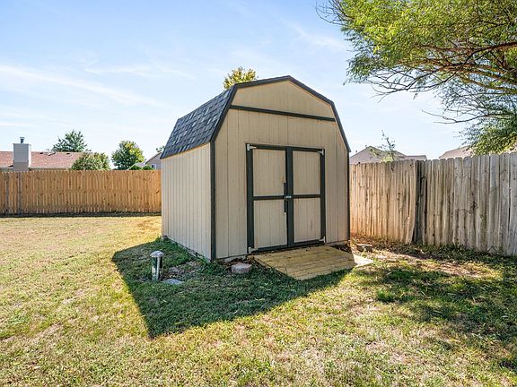 Welcome to this spacious 4-bedroom, 3-bathroom home located in West Wichita within the sought-after Goddard School District. Situated on a generous 1/2-acre lot, this home offers an abundance of features both inside and out. The roomy master suite boasts a private bathroom with dual sinks, a luxurious jetted tub, and plenty of space to unwind. Main-level convenience is enhanced with a dedicated laundry room. The kitchen is designed for both functionality and style, with an eating bar and a separate dining area, along with a formal dining room for more special occasions. The large basement is perfect for entertaining, with a family room and a wet bar room that has the potential to be converted into a full kitchen and an additional bedroom. A bonus room provides flexibility, ideal for a home gym, playroom or an office. Customize to your needs. Step outside to the expansive backyard featuring a covered deck, separate patio with a fire pit, a new back fence, and a half basketball court, perfect for outdoor fun. Two storage sheds offer plenty of space for storage. Enjoy peace of mind with a roof replaced in 2019 and an updated HVAC system installed in 2017. This home is the perfect blend of comfort, convenience, and outdoor living! Don't miss out on this beauty!!