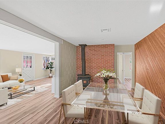 This beautifully renovated home has been freshly painted inside and out, offering a crisp, clean look that enhances its charm. A brand-new roof adds to the home's appeal, providing durability and peace of mind for years to come. Step into the fully remodeled kitchen, where brand-new cabinets, countertops, and stainless steel appliances, including a stylish stainless steel sink, create a modern and functional space. The addition of a peninsula bar makes it perfect for entertaining and casual dining. Throughout the home, brand-new vinyl plank flooring provides a seamless, contemporary feel, complementing the fresh updates. The family room is warmed by a cozy wood stove, and one of the two living areas boasts custom-built-in shelving, adding character and storage. The fully remodeled primary bathroom features a new tub with a custom tile surround, a sleek new vanity, and updated plumbing fixtures, while the second bathroom has a new toilet and shower fixtures. Additional updates include newer vinyl windows, stylish new light fixtures, and upgraded plumbing fixtures. The exterior is just as impressive, with a fully fenced property featuring a custom iron front fence with elegant brick pillars. The backyard is a private retreat with stunning custom concrete, rock work, and stone pathways that wind through a beautifully designed landscape, creating a serene, park-like atmosphere. Thoughtfully placed rock and block accents add to the charm, making this space perfect for relaxation and entertaining. A workshop and storage area, along with a covered parking space, provide added convenience. The paved driveway leads through double gates to the spacious backyard and additional parking. The front yard offers a charming covered picnic area, perfect for outdoor gatherings. Situated on a large lot in a desirable area, this home offers both privacy and accessibility. Don't miss your chance to see this beautifully upgraded home—schedule your showing today!