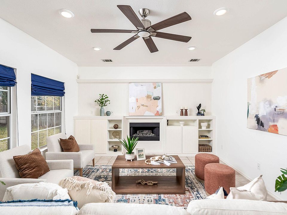Super functional layout, fresh upgrades, and an unbeatable list of bonus features rarely found in homes at this price point — including a quarter acre lot, expansive 40-foot covered patio, central vacuum system, full gutters, gas fireplace, water softener, large bay window, crown moulding, built-in speakers, blinds, and even a 10x12 storage shed plus 20x20 extra slab for play or projects. Downstairs is dedicated to everyday living and entertaining with all-tile flooring, two spacious living areas, two dining areas, bar seating at the kitchen, and a convenient powder bath for guests. Fresh interior paint, brand new carpet upstairs, and a new HVAC system offer peace of mind and move-in ready comfort. French doors lead to the oversized covered patio and generous backyard — fully fenced and perfect for play, gardening, or future enhancements like a pool or outdoor kitchen. Upstairs, all bedrooms offer generous proportions, and the primary suite feels like a true retreat with vaulted ceilings, a Whirlpool jetted tub, rainfall shower, and custom Elfa closet system. Quick access to I-35, Parmer Lane, and Tech Ridge Center puts major employers like Dell, Samsung, Apple, and GM just minutes away, along with The Domain, Q2 Stadium, and St. David’s Hospital. Parks and green spaces like Walnut Creek Park and Copperfield Nature Trail are also nearby — ideal for walking, jogging, or weekend outings with trails, playgrounds, and picnic areas. Google fiber available.