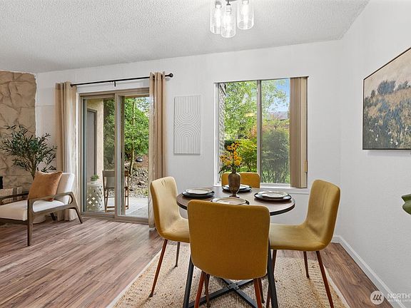 It's time to stop renting and start OWNING your home, with this move-in ready, ground floor condo, in the desirable Kingsgate neighborhood. Just minutes from Totem Lake Shopping Center, local Woodinville wineries, and quick freeway access. This quiet community has no rental cap and at this UNBEATABLE price, will make for a great long term investment. Inside has an open concept living and dining room with wood burning fireplace. You're sure to enjoy newer LVP floors throughout (NO carpets) and the refreshed bright kitchen with extra pantry closet. RELAX with South facing windows, letting in natural light & beautiful garden views. Includes 1 reserved parking + guest parking + 2 storage closets. Come tour and make this your NEW HOME today!