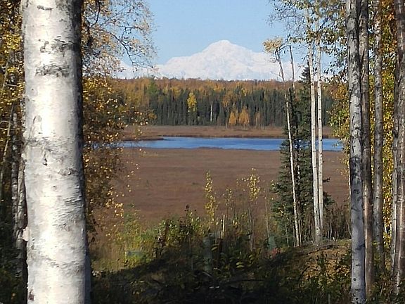 Come see the views!!!Views of Denali, Foraker and Long Lake in your back yard. 3 bedroom 2 bath ranch with unbeatable views. Home comes fully furnished. There is a full sauna in heated cabin with loft. Three 12' high stall building. Seller is leaving snow blower and lawnmower Seller is also including two additional lots to make more than an acre for your enjoyment. Please call for showing