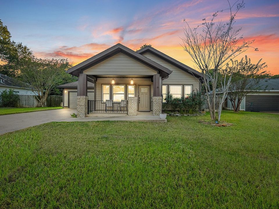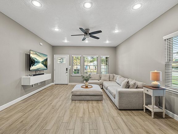 Discover this beautifully updated 3-bedroom, 2-bath home featuring a bright open layout and stylish finishes throughout. The kitchen includes modern cabinetry, stainless steel appliances, and an upgraded backsplash, while both bathrooms offer fresh, contemporary updates—including a spacious walk-in shower in the primary suite. Wood-look tile flows seamlessly throughout for warmth and durability. Outside, enjoy a covered front porch, extended driveway, and private backyard with no back neighbors, plus a covered patio ideal for relaxing or entertaining. A whole-home water filtration system adds comfort and convenience to this move-in-ready home.