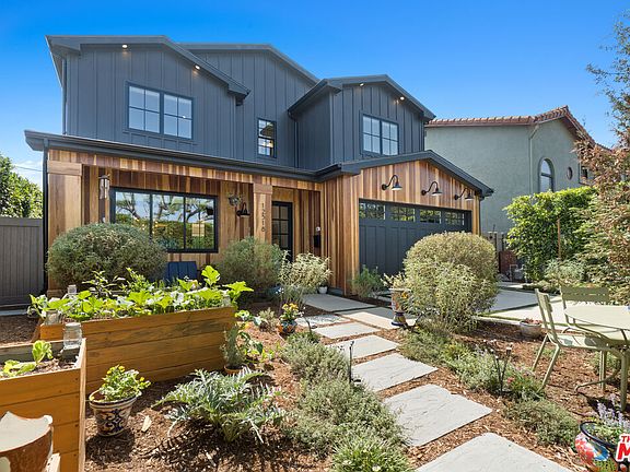Built in 2020, this 5-bedroom, 5-bathroom residence perfectly blends modern elegance, functionality, and comfort in one of the Westside's most desirable neighborhoods. From the moment you arrive, you're welcomed by a manicured front garden, custom wood entry gate, privacy hedges, and secure gates that frame the home beautifully. A peaceful walkway through the landscaped garden leads to your front door, setting the tone for the serene lifestyle inside. Step inside to an expansive open layout filled with natural light from curated windows throughout. The downstairs bedroom has been transformed into a glass-walled office, creating a bright, inspiring space to work. The living room is anchored by custom built-ins and opens through large bifold doors to a backyard designed for California living. The chef's kitchen is a showstopper, featuring Thermador appliances, a walk-in pantry, butler's area with coffee station, and abundant storage to create an entertainer's dream. Outside, the backyard boasts a 26' x 14' swimming pool with spa, a sleek deck, multiple fire pit areas, and a full outdoor BBQ station. Owned solar panels add energy efficiency and utility savings and include a battery backup that will allow you to live off the grid for over 24 hours, find two spacious en suite guest bedrooms and the luxurious primary suite complete with a huge walk-in closet and spa-quality bath. This home offers the perfect balance of modern sophistication and family-friendly warmth, all in the heart of North Mar Vista.