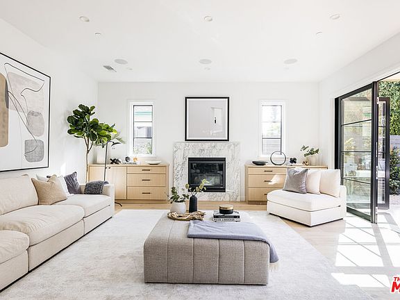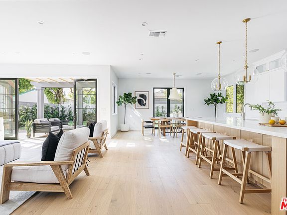 Remarkable newer construction home situated along an exclusive and idyllic tree-lined street in prime Mar Vista! The elegant grey shingled Nantucket inspired 5BR/4.5BA completely remodeled home, as offered by Riviera Property Group & designed by Joanna Leon, combines east coast charm with the best of relaxed Westside living. The light-filled entryway, with its impressive triple-height ceiling and custom paneling, welcomes you into this chicly appointed residence that offers timeless appeal. An organically flowing open floorplan downstairs has been thoughtfully designed with two separate mudroom areas, gorgeous white oak flooring throughout, a home office, walk-in pantry with wine fridge, and a great room anchored with custom oak media units and a stunning marble surround fireplace. Be inspired by the ultimate chef's kitchen featuring Wolf and Thermador appliances, imported Italian marble countertops and backsplash, and sleek white cabinetry with a grand white oak island and sophisticated brass pendant lighting. The dining space boasts separate stately French doors for ultimate indoor/outdoor access. Fashioned for entertaining, the fully enclosed backyard includes a sizable patio, open trellis, outdoor kitchen, BBQ & romantic landscaping. The primary suite features a beautifully shiplapped vaulted ceiling, built-in walk-in closet, & a luxurious en suite bathroom with imported waterjet marble mosaic flooring, oak vanity, and inviting soaking tub. Fully paid solar panels. Close to shops, restaurants, schools & more!