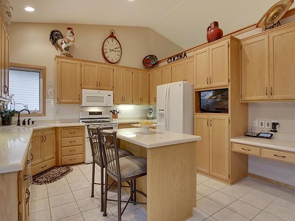 Enjoy the wooded side yard & large, maintenance-free deck to relax & grill on all summer long! This meticulously maintained modified 2-story features vaulted ceilings & tiled floors that lead into the kitchen with plenty of prep & storage space! Open floor plan down to a sunken living room with gas fireplace & backyard access! 3 of the 4 beds are upstairs including a spacious owners suite! Additional family room in LL is great for movie or game nights! In floor heat and security system too!