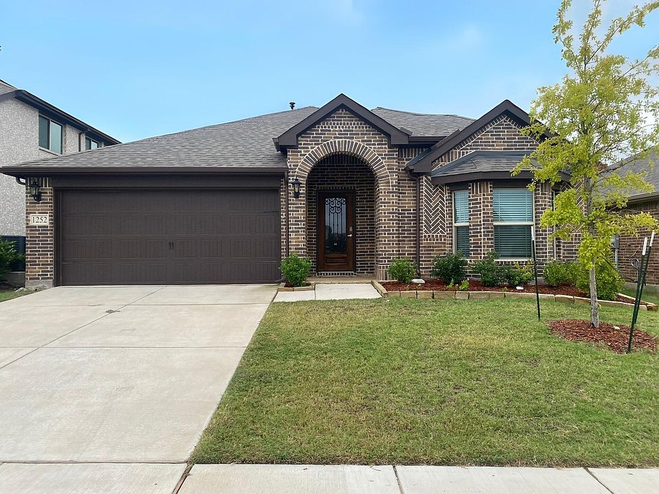 Beautiful 3 bedroom 2 bath house located in Aubrey, TX. This home has a split bedroom layout and a large utility room leading to the garage. The master bedroom boasts of an en suite bathroom and a large walk in closet. Step into the kitchen to find beautiful countertops surrounded a plethora of cabinet and pantry space. The large backyard has a covered porch making it a good spot to enjoy some fresh air. This home is part of the Arrowbrooke community giving you access to many amenities including the community pool, parks, walking trails and sports fields