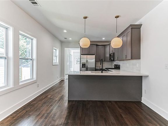 Welcome home to this renovated home conveniently located near Morehouse College, near Mercedes Benz Stadium, and minutes from the highway. Only a single tenant lived here before, the space is still practically new. This home consists of an all-new HVAC unit, plumbing, electrical wiring, appliances (washer / dryer, dishwasher etc.), flooring, windows, and a fresh coat of paint. Walk into a fully the open layout living room and updated kitchen with stainless steel appliances (including washer and dryer), quartz countertops. The home features classic components of the previous home's character with a dual wood-burning fireplace. Throughout the home, you'll notice sleek neutral and warm fixtures that add a modern finish to the home. The spacious rooms with new windows allow for great natural lighting to come in all around the home. The master bedroom has a giant walk in closet and spacious bathroom with a large shower. All bathrooms have been beautifully tiled adding an elegant touch to both. Make your way to the backyard and you'll find yourself on a spaciously built deck and a view of the large fenced-in backyard. Property has security system running, please call before touring!