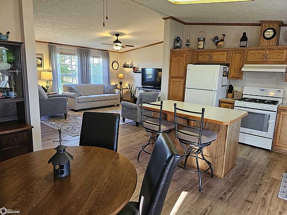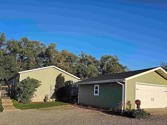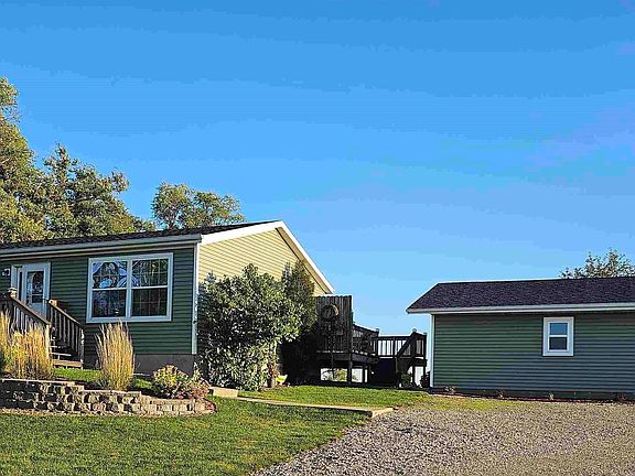 Well kept acreage on hard surfaced road. Main floor features open floor plan with 3 bedrooms and 2 full baths. Natural light brightens the kitchen. Kitchen appliances will stay. Large island with room for barstools. Cozy living room with large windows for more natural lighting. Master bedroom with master bath that has a garden tub. Sliders off dining area/kitchen to a screened in porch that goes out to a deck. You have great views from the deck. Some new lighting and new flooring throughout the home. The full basement is waiting to be finished to your liking. There is a bath plumbed in. Complete tear off on house roof. Half of the garage roof has been replaced. New siding recently completed on the house and garage. Newer water heater. Nicely landscaped yard with 2 apple trees, garden spot and rhubarb plants. There is a chicken coop for your fresh eggs. 1.5 acres is cash rented for 2023-2024 crop year. Call today to set up an appointment to see this reasonably priced acreage.