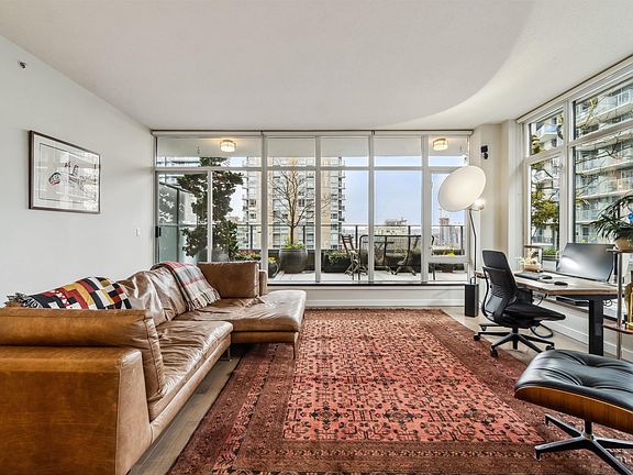 Discover elevated living in this luxurious penthouse condo, a stunning blend of modern architecture & high-end finishes. Nestled in the heart of Downtown Vancouver, the residence showcases a spacious 1287 sf interior & a breathtaking 508 SF wrap- around terrace that offers panoramic city views. Prepare to entertain in the sunlit great room and seamless access to the outdoor terrace, complete with lush garden plantings & a gas BBQ. The heart of this condo is its Euro kitchen, complete with a vast island, Wolfe gas cooktop, Subzero fridge and an espresso maker-all designed to inspire culinary creativity. Entertain in grand style or enjoy intimate meals, all while enjoying the backdrop of the city skyline. Rich hardwood floors flow throughout, complementing the airy primary and 2nd bedrooms.