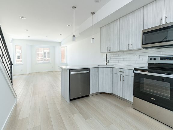 Discover urban living in this spacious 3-bedroom, 3-bathroom apartment, occupying the 2nd and 3rd floors of a contemporary building (completed in 2023). This bright, open-concept home features 9-foot ceilings and abundant natural light. The modern kitchen includes European-style cabinetry, quartz countertop and stainless steel appliances. There is an in-unit washer/dryer. The highlight is a large private 4th-floor roof deck, accessible via a pilot house featuring a sink and wine fridge, perfect for entertaining or relaxing while enjoying panoramic city views.