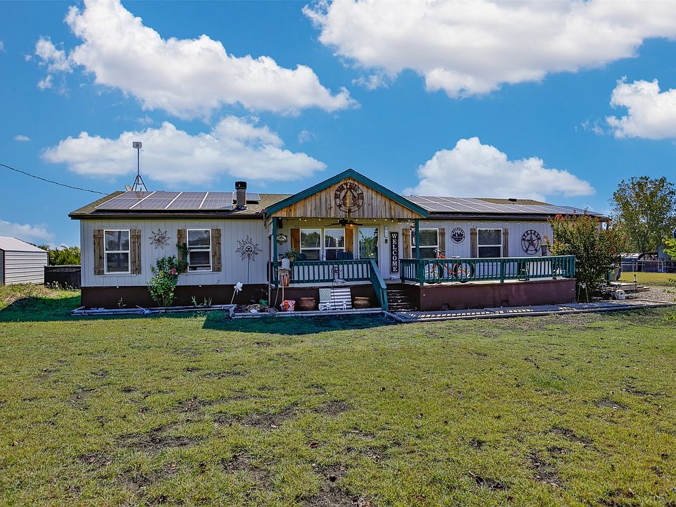 Welcome to your new country life with NO restrictions and plenty of land to roam and play. You’ll be situated in a quiet area, full of nature and serenity. Your new home features an energy efficient solar panel system that will be paid off at closing. FREE electricity is at your fingertips. Your new home has front and back patios to enjoy your evening drinks and morning coffee with family and friends. Don’t miss your new private pool. A private underground tornado shelter provides comfort and safety. A large carport and three storage sheds, provide plenty of space for toys, lawn equipment and your vehicles. Your large four bedroom and three full bathrooms have been updated and ready to enjoy. The kitchen is also updated with beautiful butcher block counters, decorative lighting and designer shelves. Everything about your new home feels inviting and warm. From the natural light to beautiful lighting and ceiling fans. Come take a look and make your new home in Sherman, TX. Sellers will even consider throwing in their zero turn mower with a good offer!