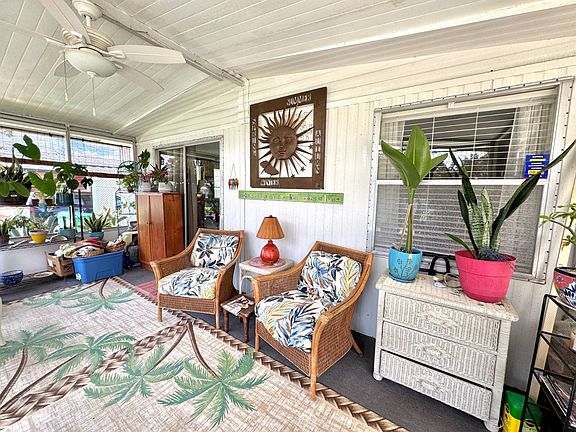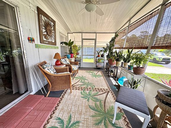 Owner has a Transferrable AHS Home Warranty 2 BEDROOM 2 BATHROOM home with Screened in porch. Luxury Vinyl flooring throughout, Freshly Painted, New Bathroom Shower Stalls both bathrooms, Updated Toilets, Washer & Dryer included. Updated lighting & Ceiling Fans. // This 55+ community is located less than 5 miles from The Worlds Most Famous Daytona Beach, Daytona International Speedway, and the airport. Grocery, pharmacy, and convenience stores are just 1-2 miles away. Colonial Colony South offers social events, 2 swimming pools, a fitness center, bocce ball, shuffleboard, horseshoes, and pickleball. The clubhouse includes a dining area, 2 pool tables, and a library. Lot rent includes city water, wastewater, trash removal, lawn care, pest control, and basic cable. Credit score of 675 and background check required. Lot rent: $859/month. Motorcycle-friendly. Pet policy: 2 pets, up to 25lbs (approval required). Schedule a showing today! *Listing data & Land lease/Lot rent is deemed reliable but is NOT guaranteed accurate.*