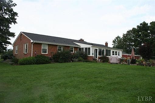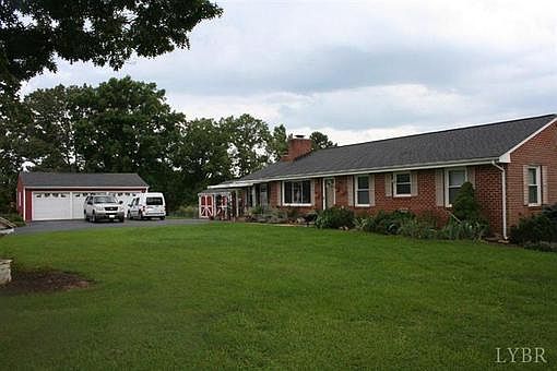 Mini-Farm w/Peaks of Otter Views - 4.69 all usable acreage w/cross fencing, barn, & water. Great for horse, goats, etc. Move In Ready 3 BR/2BA Brick Ranch with recent upgrades (Roof, Windows, HVAC, Kit/Baths, etc). Fully equipped Country Kit w/granite Counters, recessed lighting, work island, & quality cabinetry; Dining Area w/access to 3 Season Sun Rm overlooking patio w/Belgard Pavers. LR w/brick FP w/wood stove & hdwd flooring, Laundry Room, Hall BA w/heated tile flooring & jetted tub. MBR w/tiled heated floor & tiled shower, Den w/Gas Log FP w/access to Office. Det. 30 x 20 3 Car GAR & 20x28 Workshop/Storage.