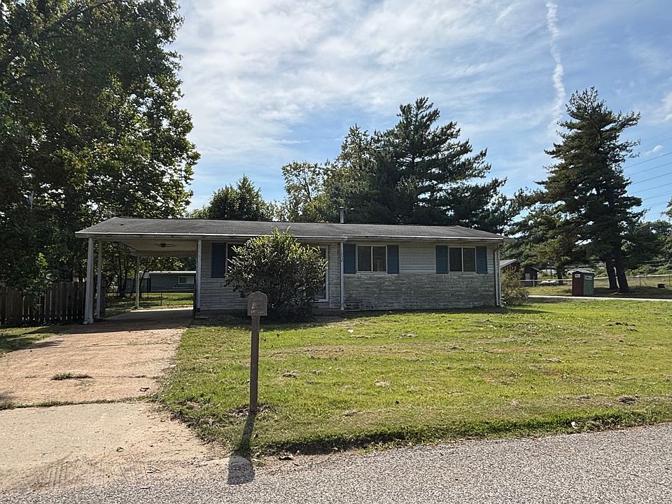 NEEDS TO PASS THE CITY INSPECTION! Single-family family 3 bedroom/2 bath house for rent located in Spanish Lake. Harwood flooring throughout, a living room/dining room combo, and a full kitchen that features an eat-in area and ample pantry space. The bedrooms are decent in size with closet space, and great lighting. The basement is unfinished, yet there is a full bathroom, washer and dryer connections, and extra storage space. The backyard is fenced in with privacy and the house sits at the end of the street. Carport available. Leasing fees apply.