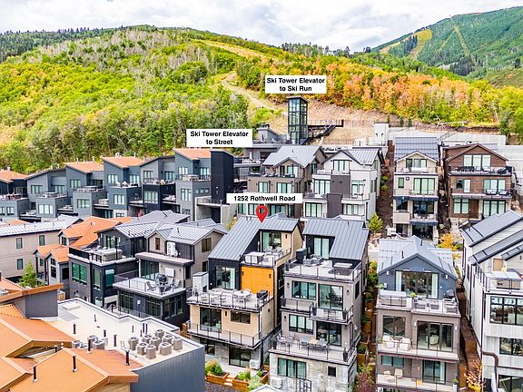 Step out your front door to find private access to Park City Mountain Resort. With a community tower for storing gear, an elevator leading directly to the slopes and a private bar for sipping cocktails, the Kings Crown subdivision provides its homeowners with the opulence and exclusivity one expects in Park City living. Next, come inside 1252 Rothwell Road and you'll see that luxury abounds in this mountain modern retreat. With four floors of beautiful design and high end finishes, this house is a family and entertainers dream. Upon entering through the front door you'll find an apré lounge with wet bar and a large heated deck featuring a gas fireplace and and a pretty view. Step down the floating staircase to the gourmet kitchen showcasing champagne colored quartz countertops and Thermador appliances. Your feet will glide on the European oak flooring equipped with radiant heat throughout. Socializing is a breeze with the great room offering a cozy fire, a large kitchen peninsula to gather and a dining table nearby. Enjoy restful nights in two luxurious suites, thoughtfully positioned at the top and bottom of the home. The one on the lowest level offers space and privacy, while the room on the highest level features a rooftop deck with hot tub and views. In addition to these two main bedrooms there is a third bedroom on the kitchen level and an ensuite flex room (currently being used as a fourth bedroom). Walk to Main Street shops and dining. Year round access to skiing, hiking, and biking in this epic location. Finally, for your comfort and ease, this house is provided fully furnished.