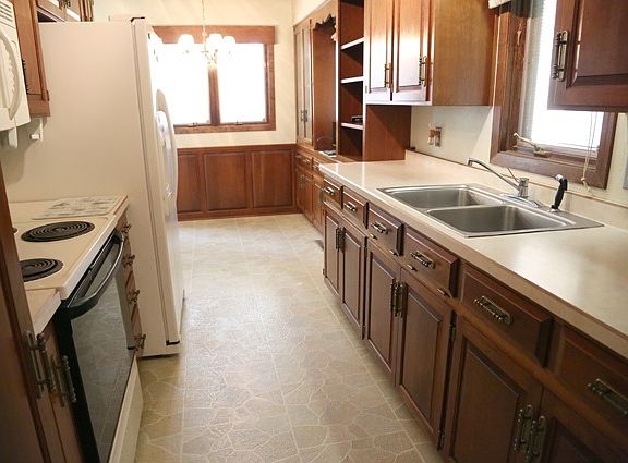 Great 3 bed ranch w/ single garage and fenced yard.3rd bedroom used as dining room w/patio door and access to beautiful deck over looking spacious fenced back yard. Garage has addition on the back for a shop. Nice addition that includes beautiful master bath with soaking tub and main floor laundry. Floored crawlspace in basement under addition for storage. Beautiful built ins in kitchen. Three baths.. Freezer in basement is reserved. Washing machine does not work. Other appliances negotiable.