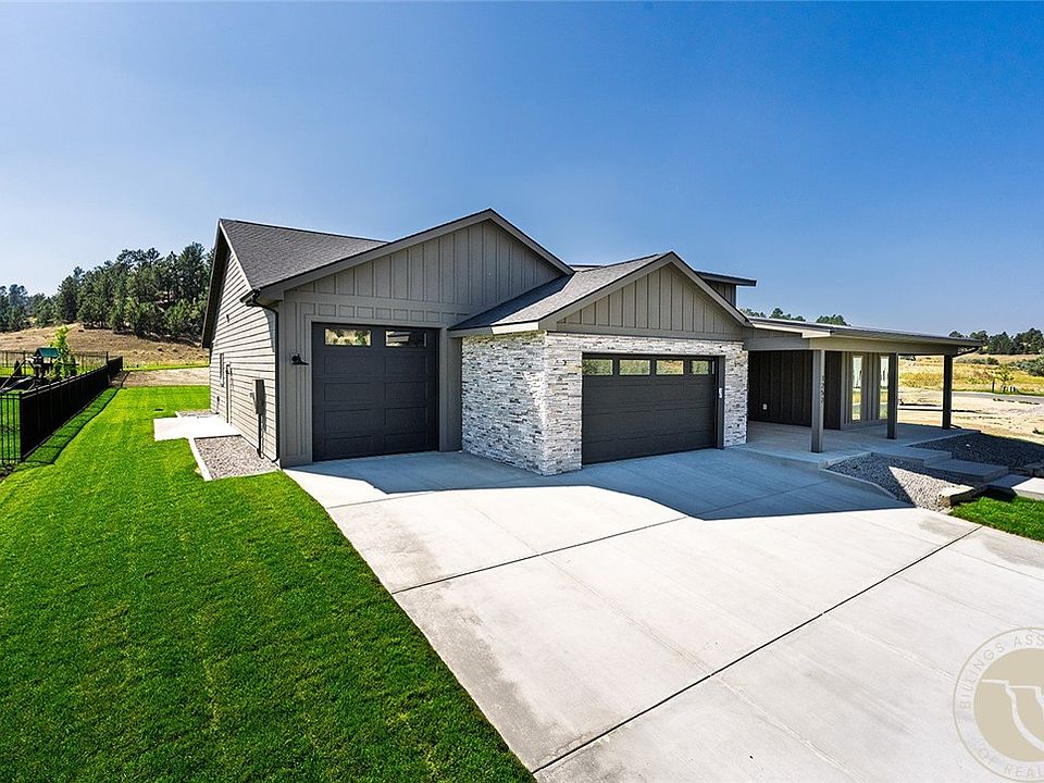 New Construction by Michael Christensen Homes in THE TIMBERS Subdivision on Alkali Creek. This single level Modern Home has 4 Bedrooms and 2.5 bath, 3 car oversized garage with one being an RV garage. Quartz countertops in the kitchen, bathrooms and laundry room. Tile, laminate and carpet flooring. Open concept with gas fireplace in living room, 9' ceilings, 8' doors. Inviting covered back patio with built in gas fireplace. 2-10 Structural Warranty provided by builder. Interior photos of similar home. Beautiful hiking and biking trails.