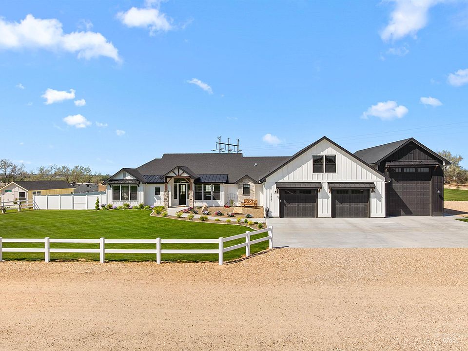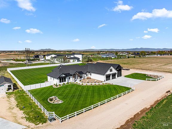 Experience the perfect blend of luxury and functionality in this stunning custom-built home, ideally situated on 1.63 acres just minutes from Lake Lowell.Thoughtfully designed with exceptional features,this property is a rare gem.Step inside to discover a gourmet kitchen equipped with Thermador ovens and range,large integrated refrigerator, butlers pantry,and an large island with abundant cabinet space—designed to make entertaining easier and more enjoyable.The open floor plan also includes a versatile great room and a cozy wood-burning fireplace in the living room,making it a comfortable retreat for every season.The main-level master suite is a sanctuary, featuring heated bathroom floors for ultimate comfort.Guests will appreciate the private guest room with an en suite bathroom,while the upstairs bonus room with its own full bath offers endless possibilities.Step outside to enjoy a covered patio overlooking the expansive property, which includes an RV bay and plenty of space for all the toys!