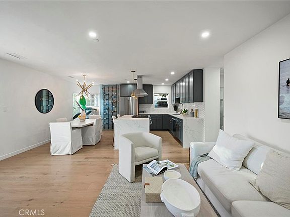 Step into a beautifully remodeled single-story home nestled in the coveted neighborhood of Del Rey, where modern elegance meets effortless indoor-outdoor living! This 5-bedroom, 3-bathroom residence is discreetly set behind a wrought-iron gate, offering both privacy and curb appeal. Sunlight streams through expansive double-pane windows and French doors, highlighting the rich White Oak floors, designer finishes, and recessed lighting throughout. The gourmet kitchen is the centerpiece of the home, featuring quartz countertops, soft-close cabinetry, a convenient utility sink, and specialized storage for pots, pans, and wine. Top-of-the-line Thor appliances—including a six-burner gas range, stainless hood, and refrigerator—make this kitchen a chef’s dream, while the open layout flows naturally into the dining and living areas, perfect for entertaining or everyday life. Retreat to the primary suite, a serene haven overlooking the backyard, complete with a spacious walk-in closet and a spa-inspired ensuite featuring dual vanities, quartz surfaces, and a flush-entry shower. Two additional bathrooms have been tastefully upgraded with walk-in showers, modern fixtures, and glass enclosures, combining style and functionality. Step outside to your private backyard oasis, designed for both relaxation and entertaining. A covered cabana with a built-in Spires BBQ, dual-zone wine fridge, TV, and elegant lighting sets the stage for gatherings, while the landscaped turf and fire pit create inviting spaces for quiet evenings under the stars. Recent upgrades add peace of mind and modern comfort, including a brand-new roof, updated HVAC and water heater, all-new copper and PEX plumbing, sleek stucco exterior, freshly finished concrete driveway, energy-efficient windows, and smart-home systems. The gated driveway ensures secure parking, and the home’s location places you just minutes from Marina Del Rey, Playa Vista, and the best shopping, dining, and coastal lifestyle Los Angeles has to offer. Experience a home where thoughtful design, timeless style, and luxurious outdoor living come together in one extraordinary package—ready for you to move in and enjoy immediately!