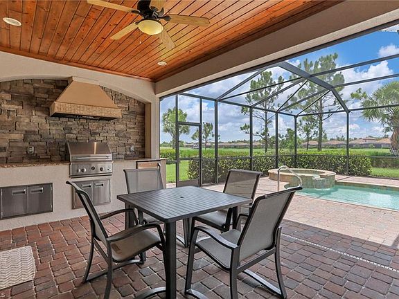 Now is the time to see this beautiful Isabella model home in The TwinEagles Club. Featuring a pie-shaped lot with more room in the back, you will enjoy the sunsets from your extended lanai. Pool, spa, outdoor kitchen and retractable storm screen (that can be used for shade) round out the spectacular outdoor space. Now let's go inside... the Isabella is a 3 bedroom plus den, 2 bathroom floorplan with plenty of storage and closet space. Clean and ready to go, this lightly used home can be yours soon. Granite countertops, tile on the diagonal in main areas with carpeting in bedrooms and den. Impact glass windows and doors. The Club is undergoing an exciting transformation of facilities including the Talon golf course and Clubhouse, that must be seen.
