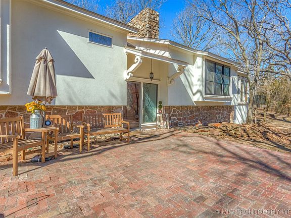 This stunning property, nestled on 2.6 +/- acres of serene countryside in Jenks, offers the perfect blend of tranquil seclusion and unbeatable convenience. Surrounded by mature trees and a scenic creek, this home is a private haven with a charming greenbelt where deer often roam. The beautifully updated kitchen is a chef’s dream, featuring granite countertops, a large island, mosaic tile backsplash, and high-end KitchenAid stainless steel appliances, including a 5-burner gas cooktop and built-in convection oven. The walk-in pantry with pull-out shelves and custom oak shaker cabinets with soft-close features ensure functionality meets style. The home’s updates also include a fresh laundry room renovation, new paint throughout. Designed for modern living and entertaining, this home boasts a private deck with a built-in outdoor grill, perfect for enjoying quiet evenings under a canopy of trees. Recent upgrades bring peace of mind, including all-new windows (2024), insulated garage doors with openers (2024), and new skylights (2024). The property is tech-ready with Magnolia commercial-grade WiFi hotspots, Nest cameras, a doorbell, and exterior floodlights—all included with the home. For pet lovers, the invisible fence surrounding the property and the wrought iron dog run with a convenient doggie door make it a dream come true. The home also features an in-law suite, ensuring comfort and privacy for extended family or guests. With its stunning natural surroundings, Jenks Public School district location, and thoughtful updates like a new asphalt driveway (2021), updated electric wiring (2023), and elegant tile flooring (2022), this home won’t stay on the market long! Don’t miss the opportunity to make this tranquil retreat your forever home.