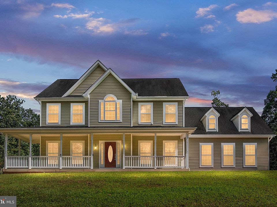 Set on a winding driveway, this stunning home offers the perfect blend of elegance and seclusion while still being conveniently close to Dahlgren and Fredericksburg. Enjoy unmatched privacy with a beautifully landscaped setting, a fully fenced backyard, and a spacious outdoor patio—perfect for entertaining or relaxing evenings. Inside, you’ll find gleaming hardwood floors, a gourmet kitchen with granite countertops, stainless steel appliances, and a center island, plus a cathedral-ceiling primary suite with a luxurious ceramic superbath. The open layout showcases 9-foot ceilings, and the full walk-out basement provides endless possibilities. A charming wraparound porch invites you to take in the peaceful surroundings. This unique neighborhood elevates the lifestyle with resort-style amenities, including a pool, tennis courts, horse stables, a showplace arena, and scenic riding and walking trails. A true showplace that combines comfort, elegance, convenience, and exceptional privacy!